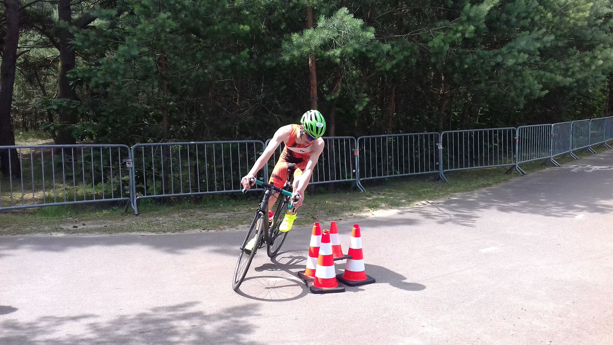 Pływanie w morzu jest trudną dyscypliną. Fala szybko weryfikuje technikę i po prostu trzeba walczyć. Bartek wypił trochę wody morskiej i po pływaniu, szybka strefa zmian i wskoczył na rower, żeby po 3600m wrócić z niego już jako 3! Na rowerze Bartek pokazał mistrzostwo i miał najlepszy czas.